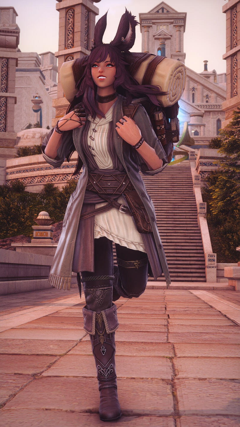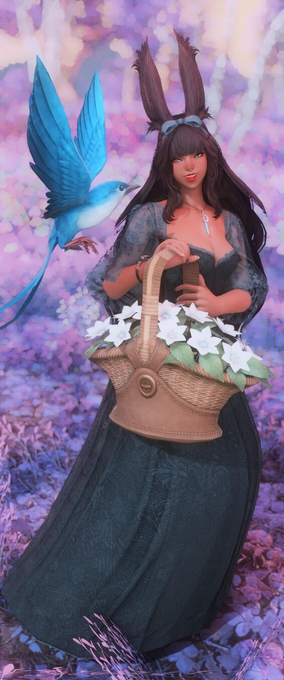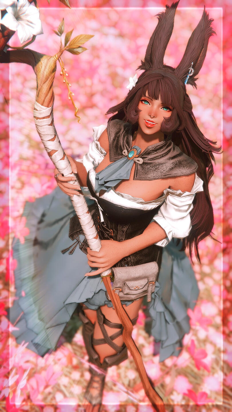 A warm smile paired with intense bright green eyes greet each new face with compassion and an open heart. Mere ilms away one could catch scents of flora, woods, and cut grass lingering on the Viera- a scent always true to who she is and a reflection of her passion as an Gleaner. Tall ears stand upright with confidence above a blanket of long flowing brown hair; lovingly weaved with fresh flowers and herbs.Though her height and Viera heritage tends to make her stand out more as a denizen of Sharlayan, she is still outwardly approachable and will always see the light in others and gladly offer her assistance to those in need, stranger or not. Sometimes seen with a tome, or maybe a staff but scarcely equipped for combat. The Gleaner's pack stuffed full of tomes, vials and an array of nearly any herbal or medicinal concoction one could need.When she is not on an expedition or spending the time logging her findings and samples from field work, she can be found strolling along the docks for fresh air or reading the afternoons away in a cozy nook away from the bustling city.