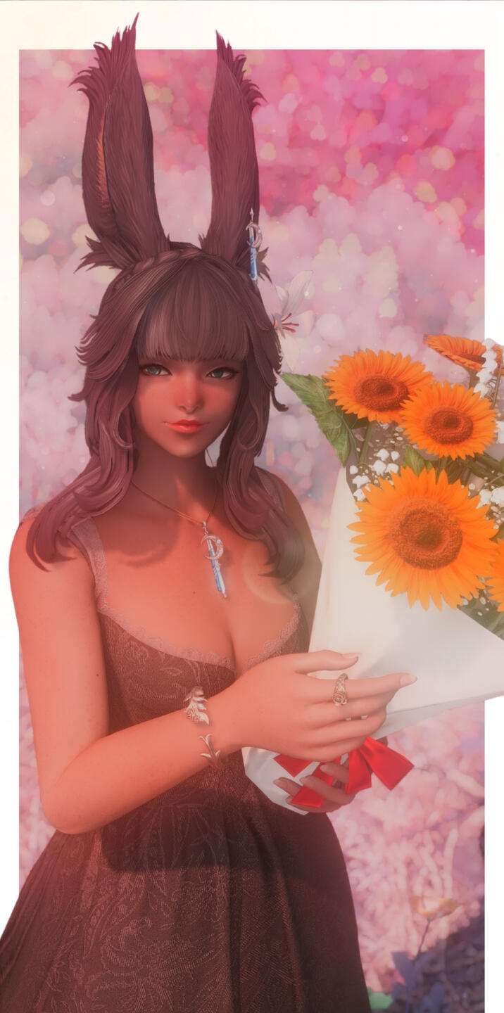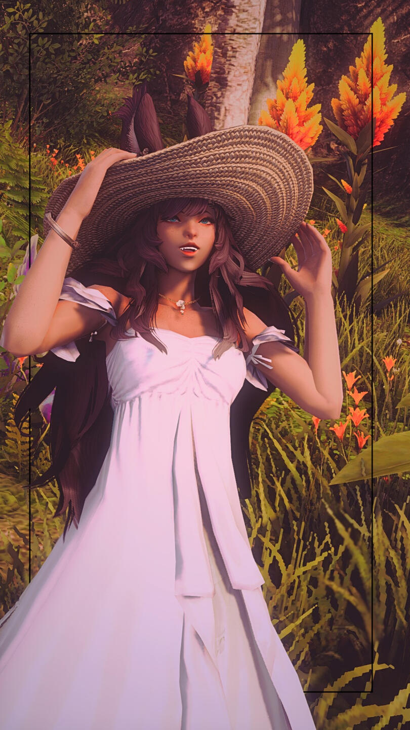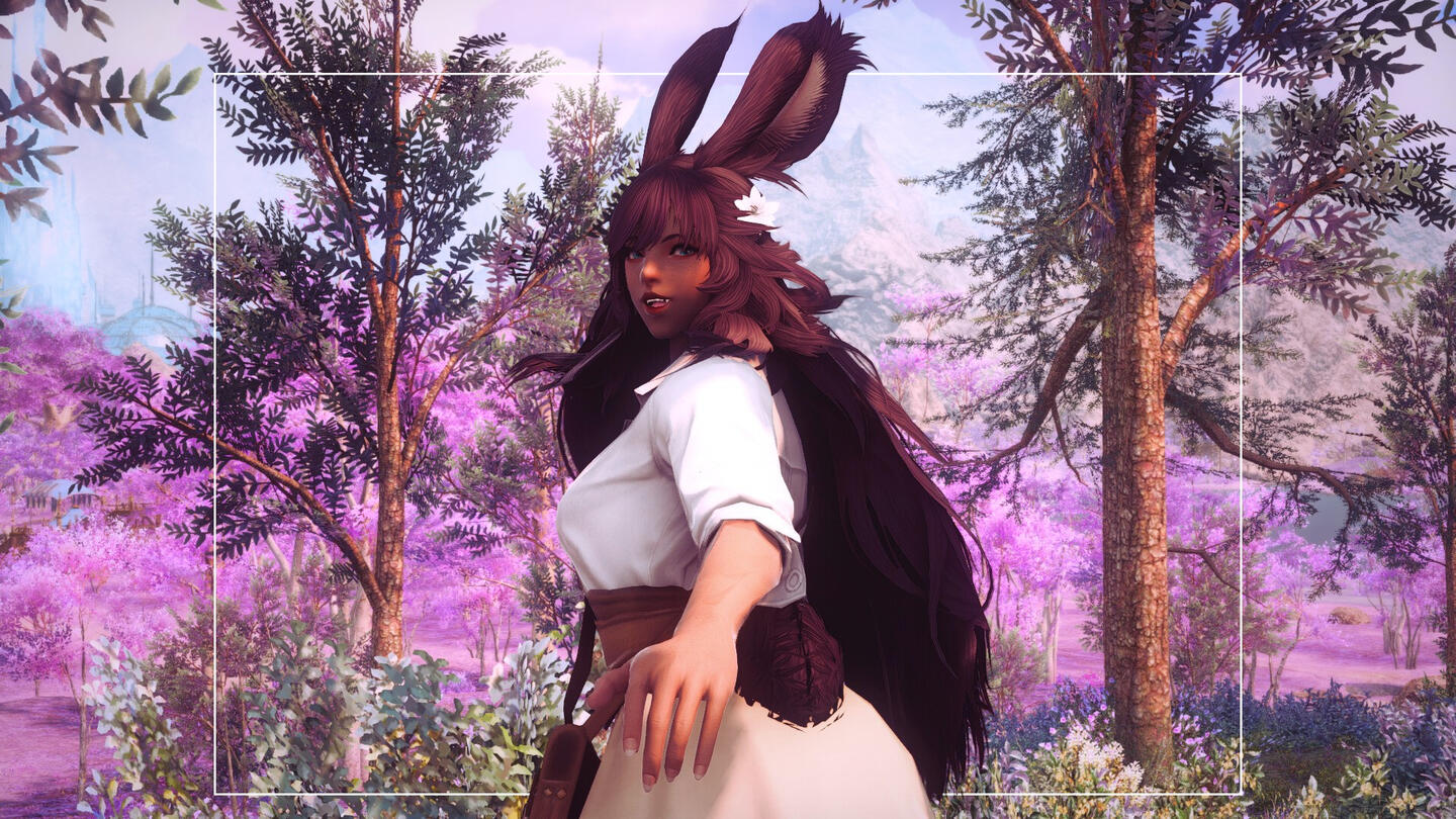 A warm smile paired with intense bright green eyes greet each new face with compassion and an open heart. Mere ilms away one could catch scents of flora, woods, and cut grass lingering on the Viera- a scent always true to who she is and a reflection of her passion as an Gleaner. Tall ears stand upright with confidence above a blanket of long flowing brown hair; lovingly weaved with fresh flowers and herbs.Though her height and Viera heritage tends to make her stand out more as a denizen of Sharlayan, she is still outwardly approachable and will always see the light in others and gladly offer her assistance to those in need, stranger or not. Sometimes seen with a tome, or maybe a staff but scarcely equipped for combat. The Gleaner's pack stuffed full of tomes, vials and an array of nearly any herbal or medicinal concoction one could need.When she is not on an expedition or spending the time logging her findings and samples from field work, she can be found strolling along the docks for fresh air or reading the afternoons away in a cozy nook away from the bustling city.